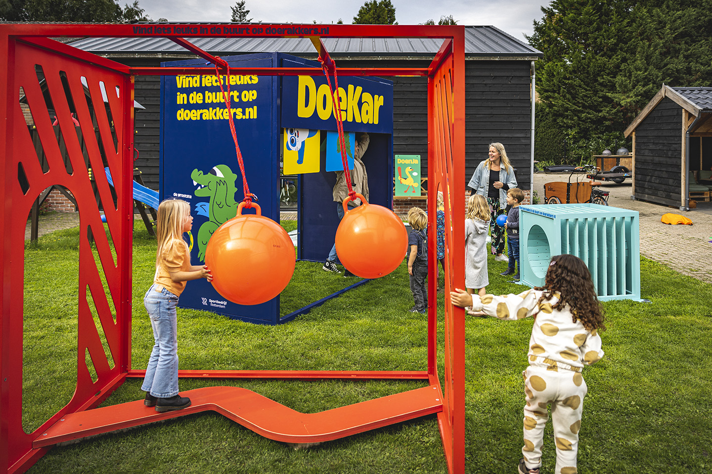 “Aan het einde van 2022 hadden we overzicht gecreëerd voor ouders en nieuw aanbod gerealiseerd. Alles komt samen in de veelzijdige campagne DoeRakkers. Bijvoorbeeld de website met een overzicht van sportief aanbod voor deze jonge doelgroep. Een ander voorbeeld binnen de campagne zijn de muur-en vloerstickers die verspreid zijn op plekken in de gebieden waar deze doelgroep komt. Deze stickers stimuleren beweging en brengen de ouder richting de website waar ze het aanbod kunnen vinden. Daarnaast hebben we een DoeKar ontwikkeld: een mobiele speeltuin die we op verschillende plekken inzetten. Op die plekken informeren we ouders actief over het aanbod in de buurt.”