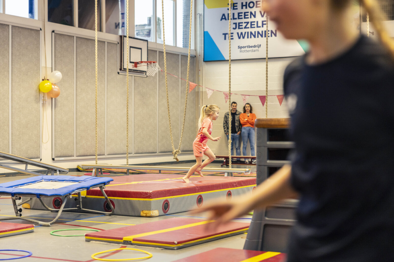 Veel van onze gymzalen stonden vaak leeg na schooltijd. Al een paar jaar werken we eraan om de bezetting van die gymzalen te verbeteren. In 2022 kreeg dit een nieuwe impuls met de campagne ‘Huur toch een zaal!’. We maakten Rotterdammers ervan bewust dat een gymzaal overal in de buurt voor een maatschappelijk tarief te huren is. Door de inzet van verschillende socialemediakanalen en door framedoeken op de gymzalen. Een potje voetbal met collega’s? ’s Avonds nog even sporten met vrienden? Of als familie sportief in beweging? Het is mogelijk door zelf een gymzaal te huren. Mede dankzij deze campagne zijn de gymzalen in 2022 voor 1.480 uur gehuurd via onze webshop. Dit is ruim een verdubbeling ten opzichte van 2022! Een resultaat waar we heel blij mee zijn. En daarom krijgt deze succesvolle campagne een vervolg in 2023.