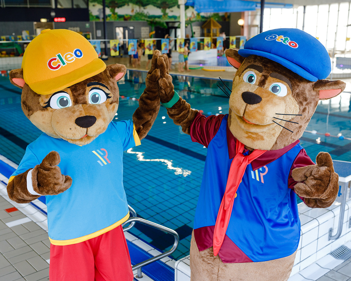 In 2022 maakten de eerste kinderen kennis met de otters Cleo en Otto tijdens hun zwemles. Deze otters maken deel uit van ons vernieuwde zwemleswerkplan. Het doel blijft hetzelfde: een kwalitatief goede zwemles, zodat kinderen zwemveilig worden. En dat zijn ze pas als ze óók zwemdiploma C op zak hebben. Cleo en Otto helpen om de kinderen te stimuleren en te motiveren. Hoe? Dat leggen productspecialist Eline en zwemonderwijzer Ampario aan je uit.