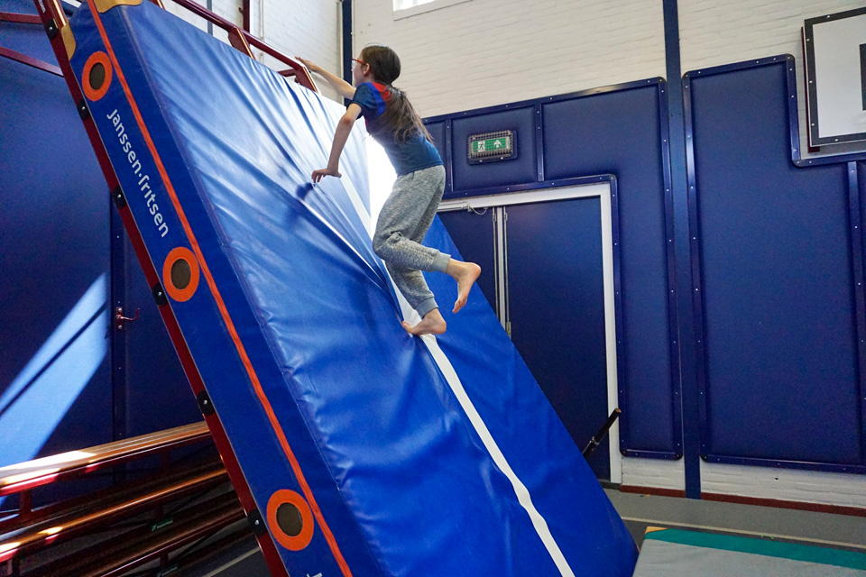 Dit soort resultaten bereik je wat ons betreft vooral samen. Daarom legden we onze ideeën voor de Urban Sports Gymzaal voor aan een groep gebruikers. We spraken met gymdocenten, sportaanbieders en experts over een optimale inrichting van de gymzaal. Hun input gebruikten we om tot dit succesvolle ontwerp te komen. Een voorbeeld is de input van de gymdocent. Op zijn aanraden hebben we een ladder en glijbaan toegevoegd aan de elementen van de cubewand, zodat ook kleuters er gebruik van kunnen maken.