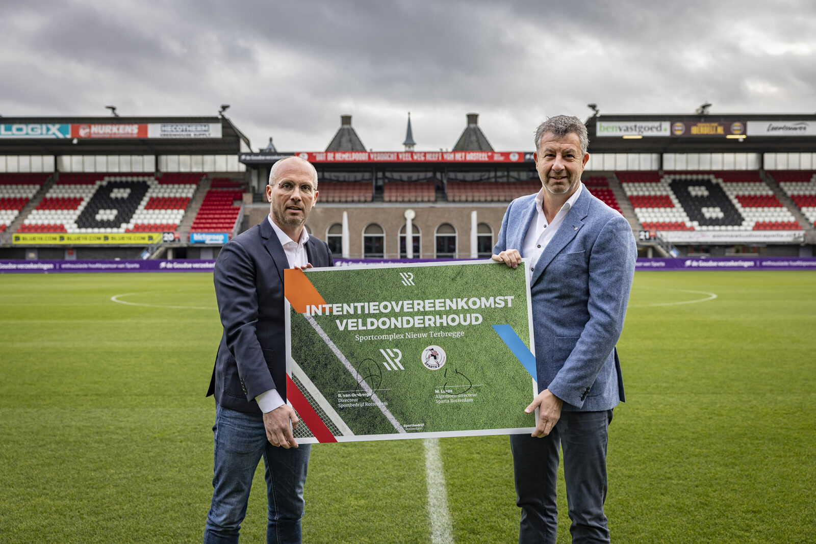 Vanaf dit seizoen speelt Sparta Rotterdam haar thuiswedstrijden weer op écht gras in het stadion. De selectie traint daarom ook weer op natuurgras: op sportcomplex Nieuw Terbregge. De 2 natuurgrasvelden waarop de selectie speelt, maakten wij in de zomer van 2022 bespeelbaar voor het niveau van deze topsporters. Sparta stelt hoge eisen aan het onderhoud van deze velden. En terecht. Sparta selecteerde ons als partner voor het veldonderhoud. Een prachtig compliment voor het vakmanschap van het onderhoudsteam van de sportvelden.